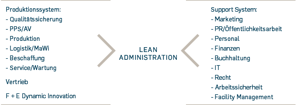 Verbesserungen in administrativen Prozessen sind in allen Bereichen eines Unternehmens notwendig. Insbesondere die Verbindungsstellen zwischen den einzelnen Unternehmensbereichen beinhalten große Optimierungspotenziale. Unter dem Begriff „Lead to Lean®-Administration“ entwickelte Dr. Schönheit + Partner verschiedene Methoden und Instrumente, um die administrativen Prozesse in Unternehmen zu durchleuchten und zu optimieren. Ziele sind die Erhöhung der Wertschöpfung und die Abschaffung von unnötigen Tätigkeiten, die Verschwendung darstellen. Dadurch werden nicht nur konkrete Beiträge zur Steigerung der Effizienz und Produktivität geleistet, sondern auch Prozessdurchlaufzeiten verkürzt und die Ressourcenverfügbarkeit erhöht. So gewinnen Sie an Transparenz in den administrativen Prozessen und können Verschwendungsherde erkennen und abstellen.