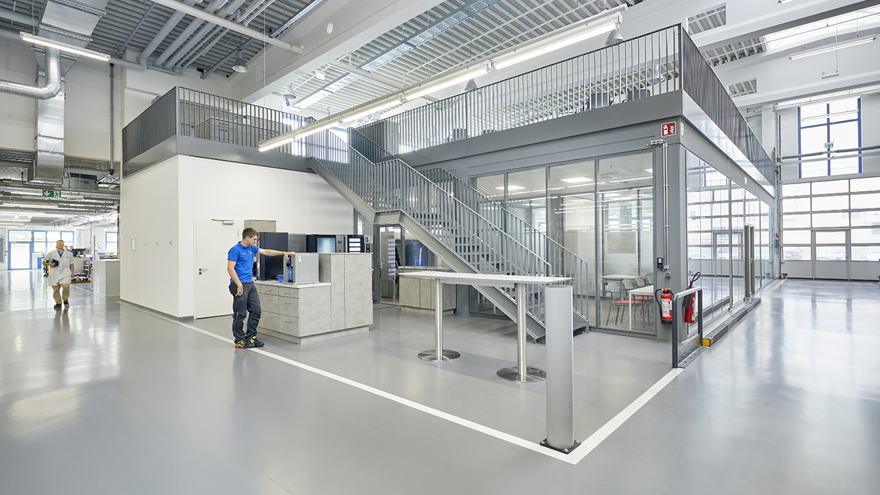 Produktions- und Logistikfläche: 9.800 m² (3.800 m² Neubau, 6.000 m² Bestand)